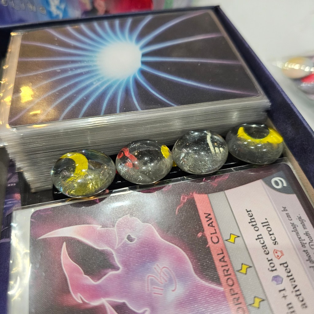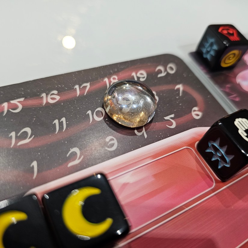 Yes, felt great. A HUGE part of my enjoyment of board games is the tactile nature. I guess it tickles my neurodivergent brain in the right spot. So the little clink it does when placed and the nice little swish when you move, it brought so much joy to that part of the game. And yes, it doesn’t mark when you go above 20. So how did I solve that?