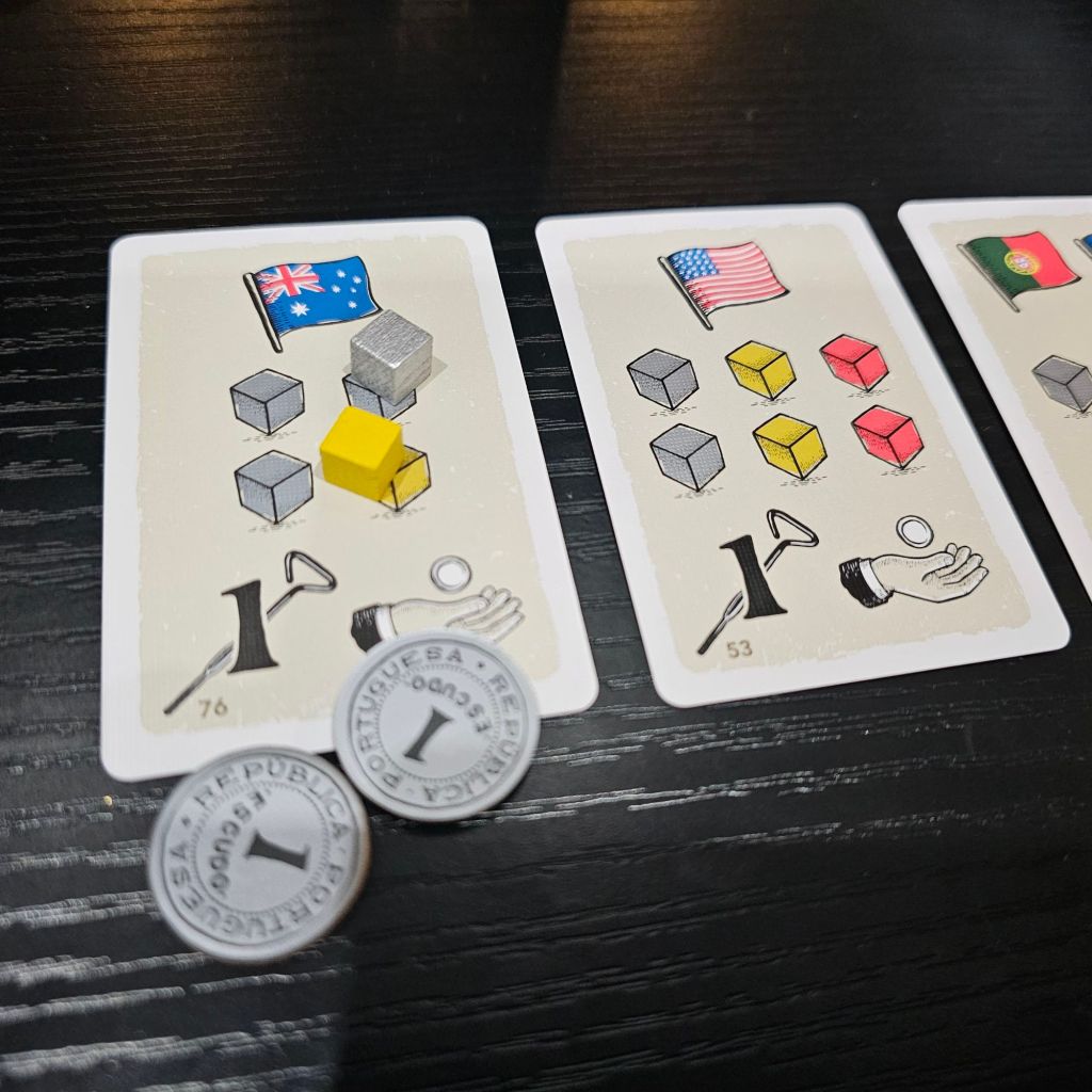 Half of this game is pretty standard production game: get cubes, transform into different cubes, cash in for cards or money, get points. It’s a streamlined and clean implementation of a familiar mechanism that will make a lot of people feel at home.