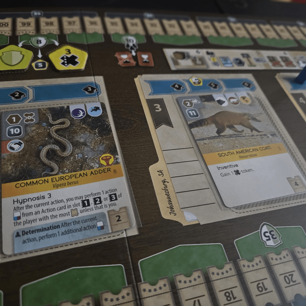 Solo has a dedicated automa deck that adds multiple symbols and takes cards from the display, but it’s not really an opponent, the game is a beat your own score deal.