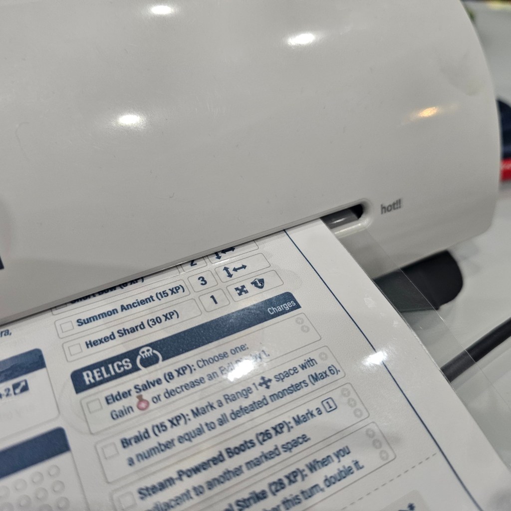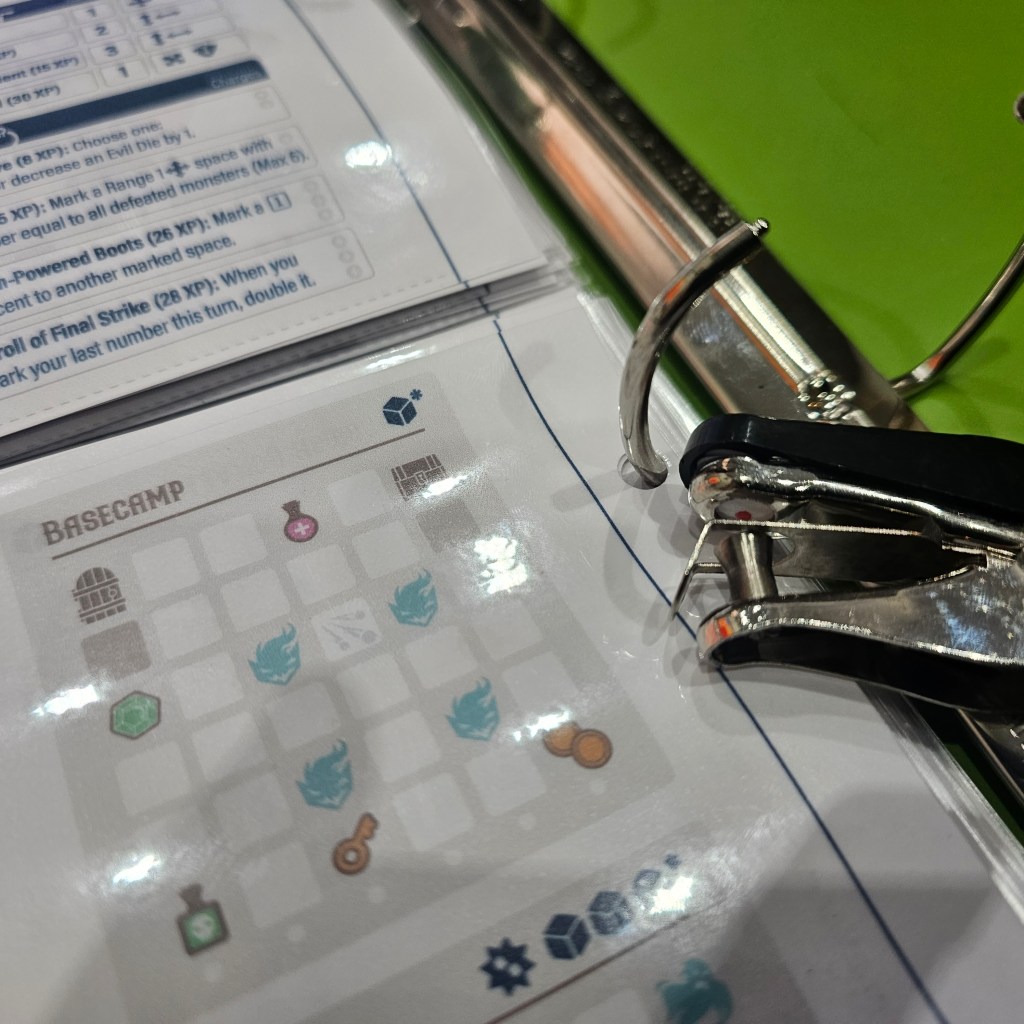 Initially this game was released with a full page with one map and encounter table for each character. The problem is that there are 300 maps over 3 scenarios, and 16 different characters. Luckily, one stretch goal was hit that broke that down into 3 parts, so you just need to print the 16 characters, 8 encounter table for each of the 3 campaigns, and the maps. Again, there are 300 of them. Honestly, print a sample that and you’ll be fine.